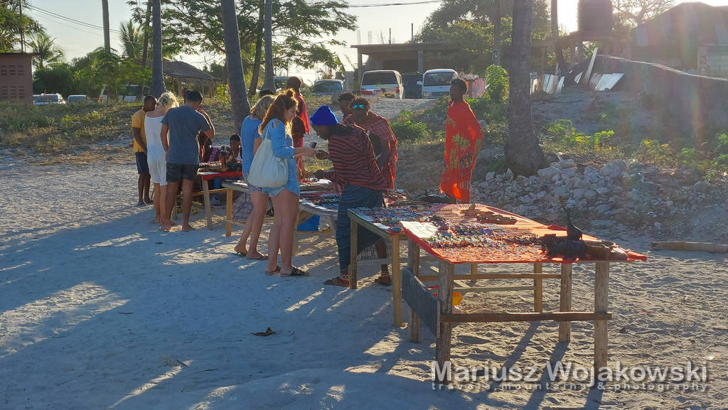 Paje i The Rock Restaurant i jak to wygląda naprawdę. Czy pocztówki i intagramowe fotki nie kłamią? Hmm... Warto sprawdzić bo chyba każdy oczekuje czegoś innego. My sprawdziliśmy to od strony lądu. Ale po kolei. Do Paje mamy blisko i zastanawiamy się czy dala dala czy pieszo pieszo. Po tej stronie wyspy są piękne ciągnące się kilometrami białe plaże. A przyglądając się mapie i odległości do Rock Restaurant wybieramy pośrednie rozwiązanie. Do Paje dala dala a dalej spokojny spacer po plaży w stronę restauracji. Jest jeszcze przypływ więc pieszo to będzie przyjemny spacer i pięknym turkusowym morzem w tle.