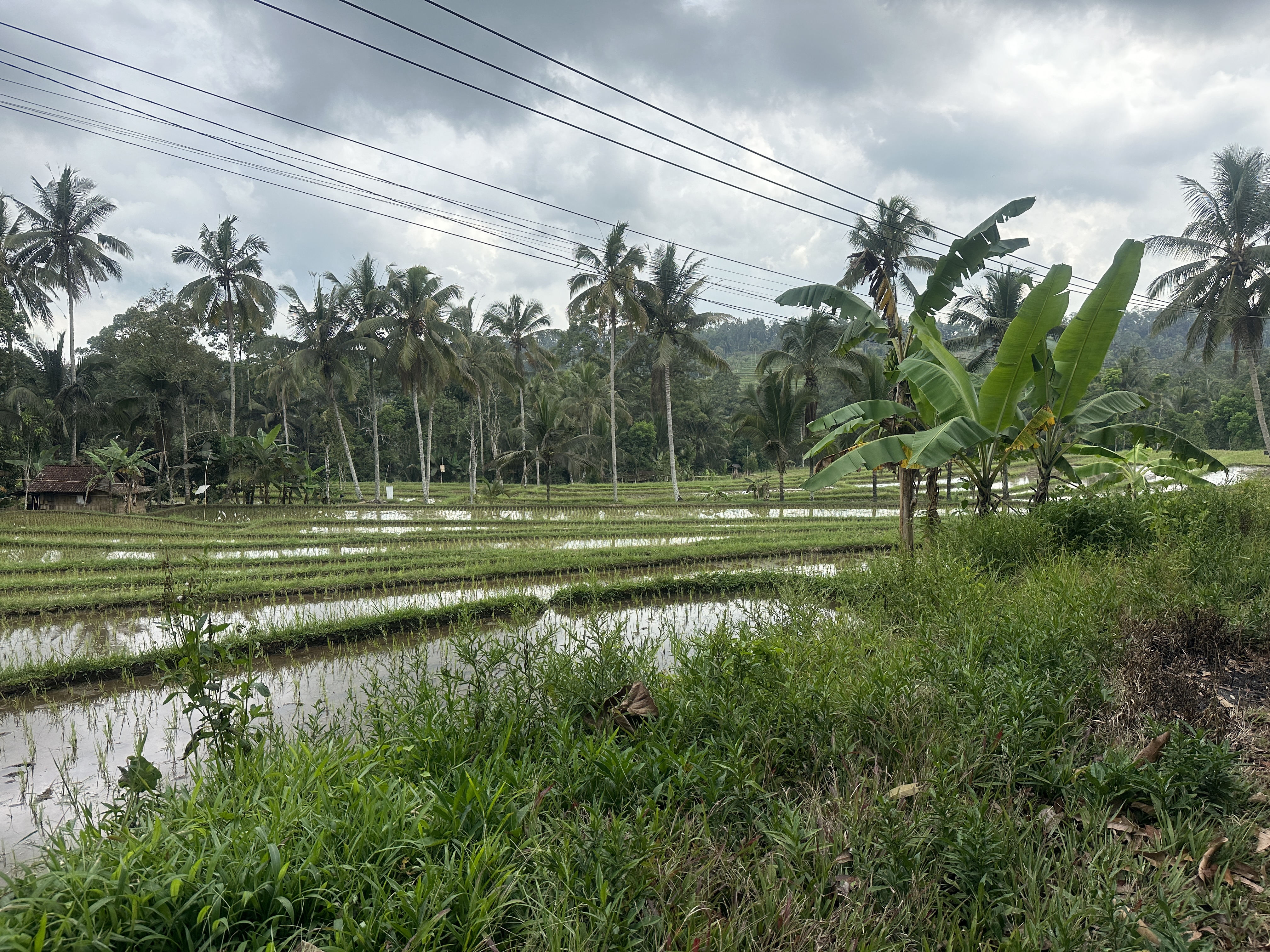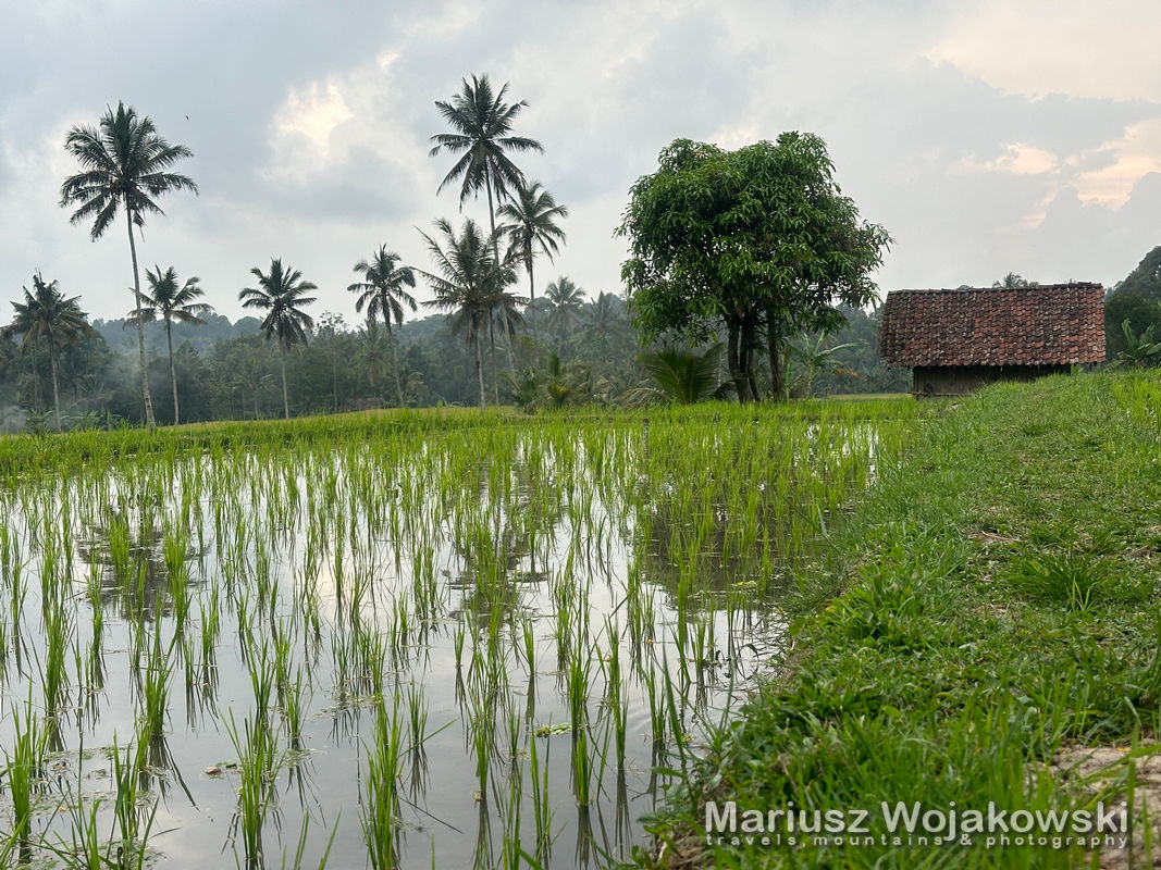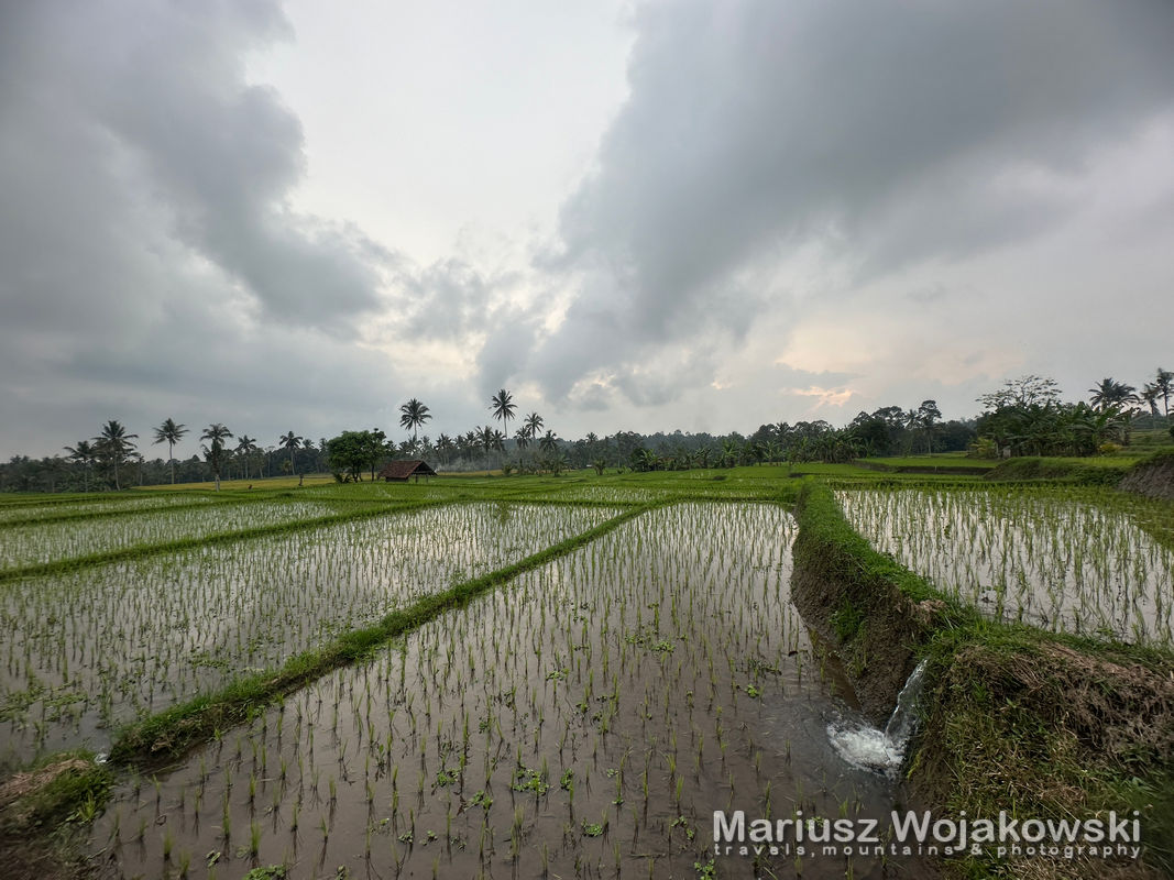 Trasa z Banywangi na Ijen skuterkiem dzielimy na spokojne 2 dni. Wybieramy nocleg blisko Ijen, żeby nie zarywac całej nocy i przybyć zaraz po otwarciu parku. Wybór padł na wioskę blisko Licin z przesympatycznym hotelem z basenem i domkami. Teras Hotel & Villa zatrzymujemy się właśnie tu. My wybieramy własny domek. Po rozpakowaniu rozglądamy się po okolicy. Jak tutaj jest spokojnie. Wręcz magicznie. Zaraz za hotelem jest rzeka i normalna dżungla. Spacerujemy dalej drogą a tu po prawej i lewej stronię ciągną się pola ryżowe.