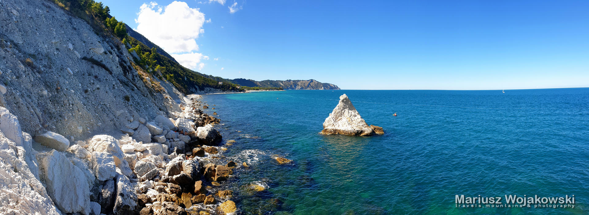 Niedaleko Ankony mijamy też jedną z najbardziej cenionych plaż przez ankończyków Plaże Mezzevelle. Sama natura ukształtowała tą plażę w ciekawy sposób. Zatrzymujemy się żeby podziwiać widoki i poszerzamy swoją wiedzę na temat geologii. Dużo ludzi i samochodów na pobliskim parkingu. No i zejście z klifu jest ostro w dół. Jak już się zdecydujesz zejśc to raczej na dłuższe plażowanie.